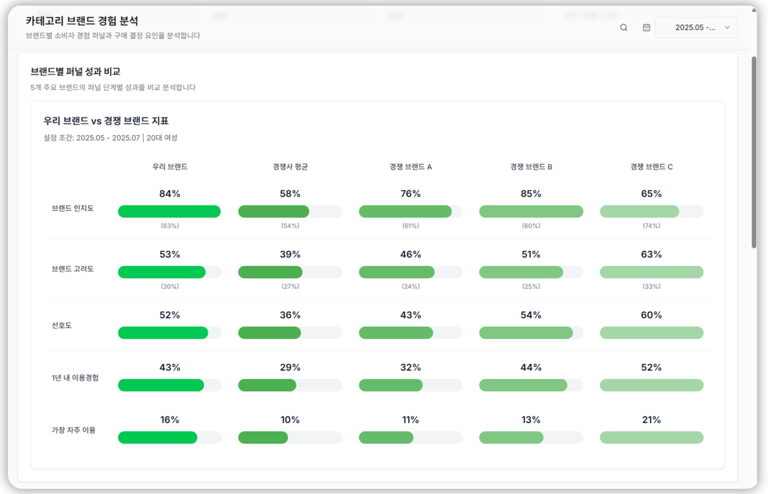 시장 점유율, TOM, 브랜드 이미지 등 글로벌 기업이 보는 핵심 Metrics를 한눈에.